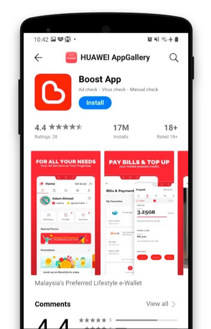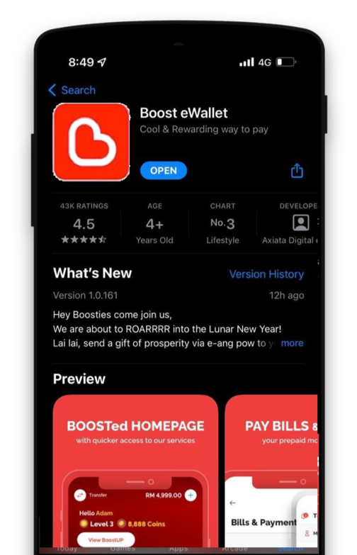 Muat turun Aplikasi Boost menerusi Apple AppStore, Google Playstore dan Huawei App Gallery
